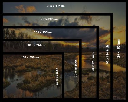 Pantalla FF 305 x 406 cm, Serie FF, Formato 4:3, 120" x 160" pulg., Diagonal 508 cm, 200"pulg., Mod. FF200D-F+R Proyección Frontal y Trasera - Mattweiss |